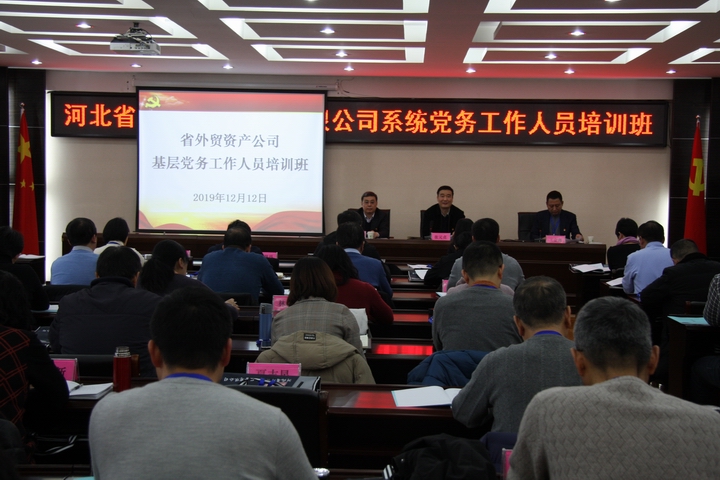 為深入學(xué)習(xí)貫徹習(xí)近平新時(shí)代中國(guó)特色社會(huì)主義思想和黨的十九大、十九屆二中、三中、四中全會(huì)精神,牢牢把握新時(shí)代黨建工作各項(xiàng)要求,進(jìn)一步提高基層黨務(wù)工作人員業(yè)務(wù)素質(zhì)和履職能力,持續(xù)深入推進(jìn)基層黨組織標(biāo)準(zhǔn)化、規(guī)范化建設(shè),推動(dòng)基層黨建質(zhì)量水平整體提升,為企業(yè)科學(xué)、高質(zhì)量發(fā)展提供堅(jiān)強(qiáng)組織保障,12月12日,省外貿(mào)資產(chǎn)公司在正定縣委黨校組織開(kāi)展了為期2天的系統(tǒng)黨務(wù)工作人員集中培訓(xùn)。公司黨委書(shū)記、董事長(zhǎng)、總裁張?jiān)懗鱿⒆鏖_(kāi)班講話和講黨課,省國(guó)資委黨建處處長(zhǎng)劉慧昌蒞臨指導(dǎo)作專題培訓(xùn)。公司系統(tǒng)企業(yè)黨務(wù)分管領(lǐng)導(dǎo)、組織員(黨建聯(lián)系員)、黨支部書(shū)記、黨支部組織委員、宣傳委員等70余人參加培訓(xùn)。