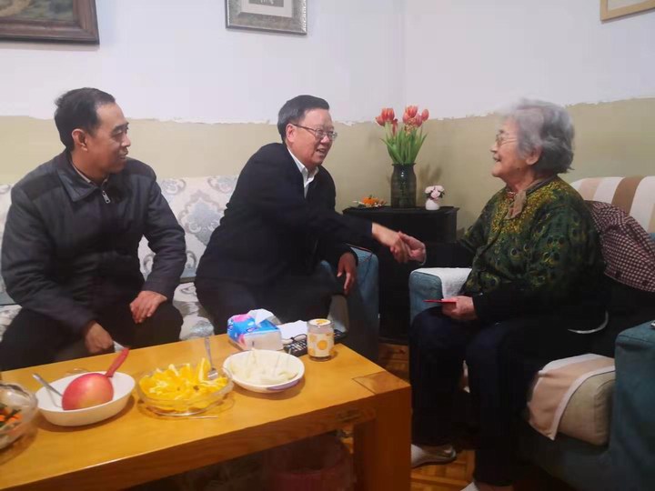 在91歲高齡的離休老干部、老黨員張英家里,李光同志代表省國資委黨委送去節(jié)日的問候和誠摯的祝福,并送去了慰問金和慰問品。