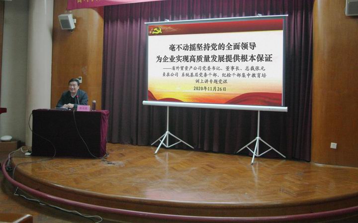 2020年11月26-27日,省外貿(mào)資產(chǎn)公司組織開展了公司系統(tǒng)基層黨務(wù)干部、紀(jì)檢干部集中教育培訓(xùn)。公司黨委書記、董事長、總裁張元貞出席并講專題黨課。省外貿(mào)資產(chǎn)公司領(lǐng)導(dǎo)、公司系統(tǒng)各級黨組織書記、黨務(wù)分管領(lǐng)導(dǎo)、組織員(黨建聯(lián)系員)、紀(jì)委書記(紀(jì)檢委員)共70余人參加培訓(xùn)。
