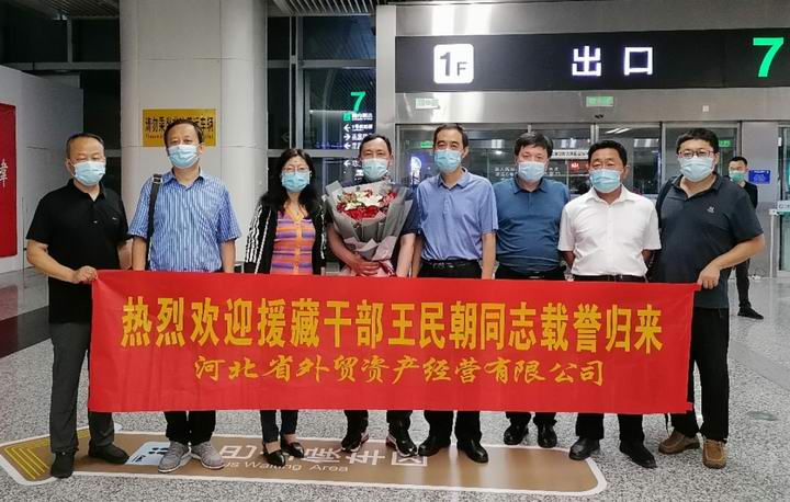 2022年7月12日凌晨,省外貿(mào)資產(chǎn)公司援藏干部王民朝同志完成使命,結(jié)束為期三年的援藏生涯,從西藏回到石家莊。受黨委書記、董事長張?jiān)懲?/span>委托,黨委副書記齊山水,工會(huì)主席張艷芳,綜合辦公室、黨委組織部、河北藍(lán)翼公司主要負(fù)責(zé)人代表公司黨委到機(jī)場迎接,對(duì)王民朝同志圓滿完成援藏任務(wù),載譽(yù)而歸表示熱烈歡迎。
